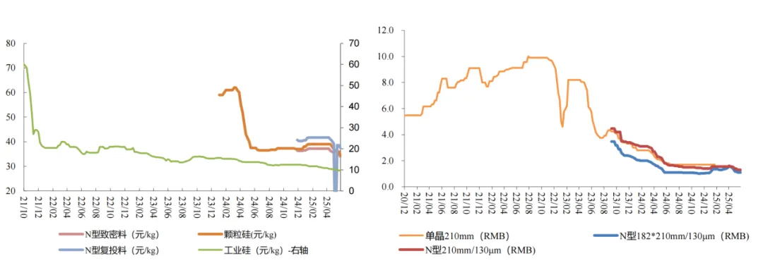 폴리실리콘은 태양광 산업 체인의 가장 상위 단계이며, 단결정 및 다결정 실리콘 소재 제조의 기본 원료입니다. 실리콘 웨이퍼 분야에서는 장지그린에너지와 중환반도체가 기술 혁신 투자를 지속적으로 늘리고, 생산 공정을 최적화하며, 생산 용량 확장 전략을 적극적으로 추진함으로써 실리콘 웨이퍼 시장 공급 구조를 성공적으로 장악했습니다. 이들 업체의 제품은 국내 시장에서 널리 사용될 뿐만 아니라 해외 여러 국가 및 지역으로 수출되고 있습니다. 실리콘 웨이퍼 기술 측면에서는 대형 및 박막 웨이퍼 기술이 주요 개발 동향입니다. 182mm 및 210mm 대형 실리콘 웨이퍼가 시장 점유율 95%를 돌파하며 주류 시장으로 자리 잡았습니다. 또한, TOPCon, HIT 등 N형 셀 기술의 발전으로 N형 실리콘 웨이퍼 수요가 빠르게 증가하고 있으며, 2025년에는 N형 실리콘 웨이퍼 시장 점유율이 50%를 넘어설 것으로 예상됩니다.